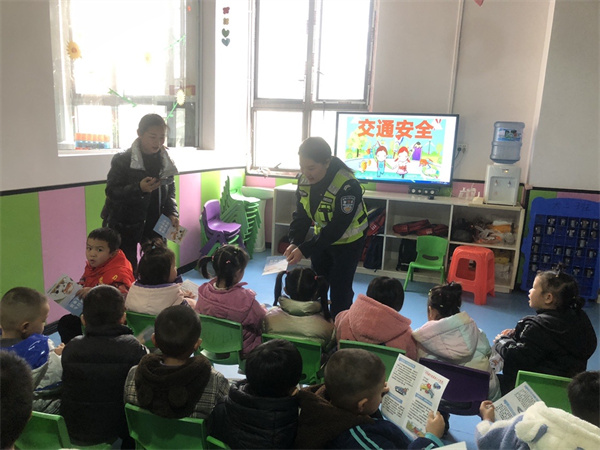 “紅燈亮的時候,能不能過馬路?”“小朋友們在坐車時,有哪些需要注意的呢?”下午3時20分,民警來到在陽光托育中心,用通俗易懂的語言教小朋友們安全行走以及乘車注意事項,引導幼兒從小樹立遵守交通規則、安全出行、文明交通的安全意識,並以“小手拉大手”的方式向父母宣傳交通安全知識,讓交通安全在幼兒和家長心中落地生根。(齊丹丹)