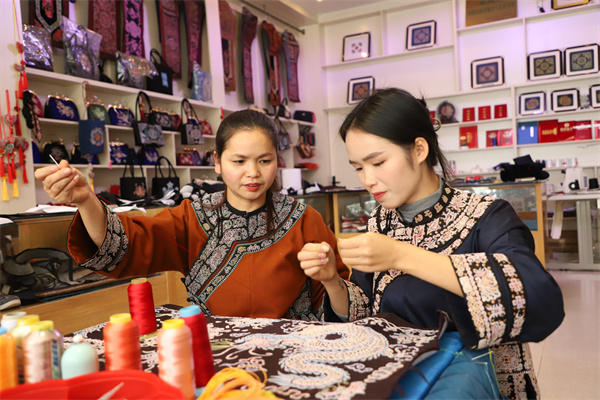 近年來,三都縣充分利用資源優勢,把發展民族文化産業作為群眾增收致富的一項重要舉措,通過“公司+非遺人才+繡娘”的模式,推動馬尾繡、蠟染工藝等民族指尖技藝轉化為“指尖經濟”。目前,有效帶動全縣3.7萬餘名水鄉婦女靠着自己的雙手在“家門口”實現就業增收。(陳明珠 蘇沛柔)