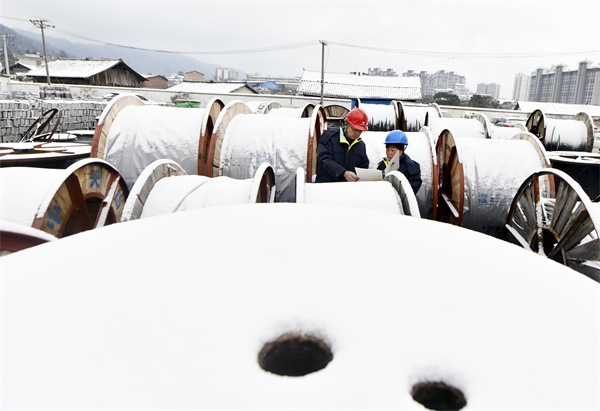 1月22日,貴州電網凱里黎平供電局物流服務中心工作人員正在盤點應急物資,積極做好低溫凝雪惡劣天氣下物資供應保障。(林世禎攝)