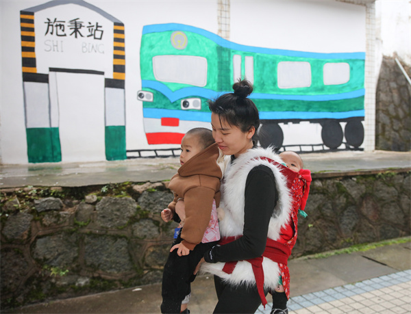 1月31日,在貴州省黔東南苗族侗族自治州施秉火車站,剛下列車出站的乘客。(磨桂賓 攝)