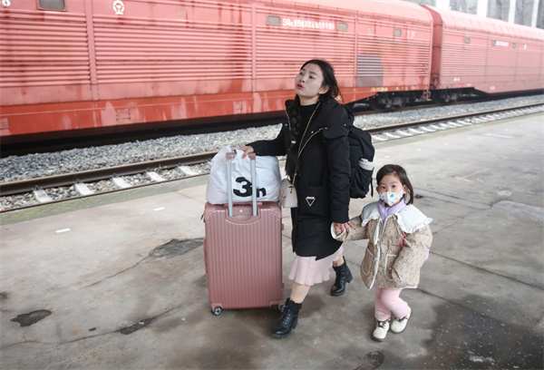 1月31日,在貴州省黔東南苗族侗族自治州施秉火車站,乘客在等候列車進站。