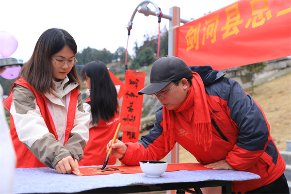 “年年都來社區送春聯,老百姓非常歡迎,看著大家拿我們寫的春聯到家裏面貼,我們也感到很滿足!”劍河縣文聯書法家協會副主席周黔説。