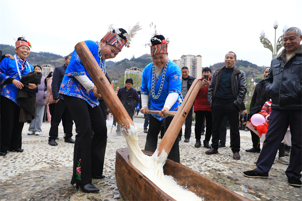 群眾正在打糍粑。楊潔茹攝