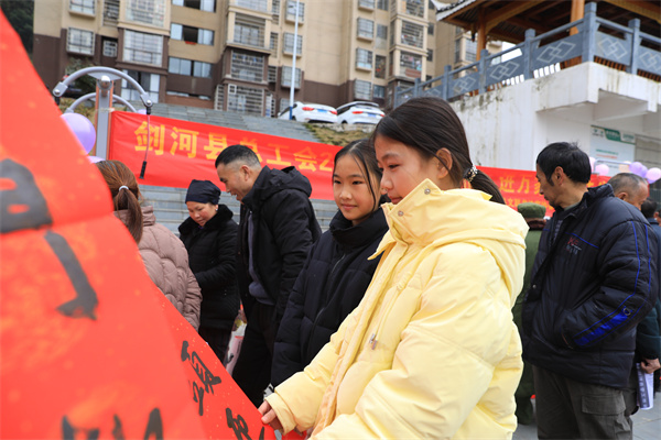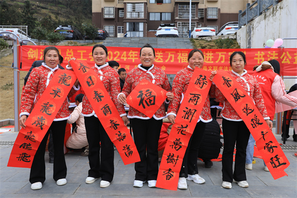 筆墨凝香,新春納福。隨着春節的臨近,2月1日,貴州省劍河縣總工會組織縣書法愛好者們,走進易地搬遷安置社區,現場揮毫潑墨寫春聯,將新春之“福”送到群眾的心坎上,為社區增添了濃濃的年味兒。