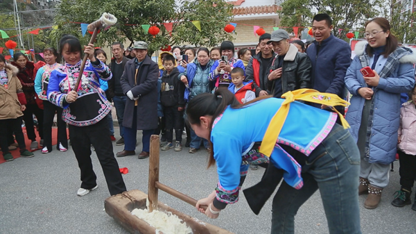 社區群眾耿新好説:“我們的風俗就是過年要打粑粑過年,糍粑上畫花好看,代表明年的風調雨順,我們老老少少吃這個粑粑,明年都會順順利利的。”