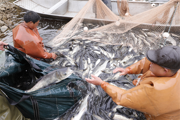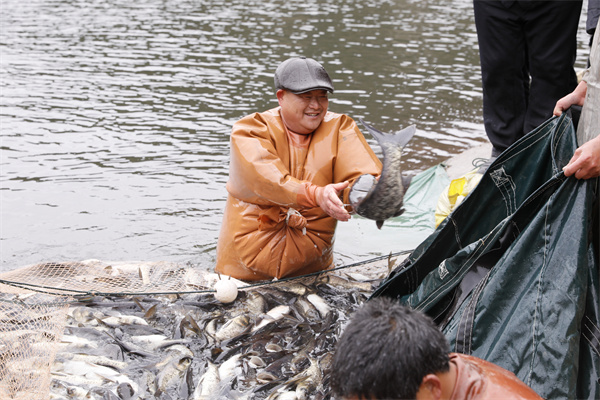 近年來,雙江鎮嚴格落實“河長制”工作機制,為優化水源環境,保護生態水域生物多樣性,提高村集體經濟收益,該鎮的呂孖村採取“黨支部+合作社+村民”發展方式,年初向生態水域合理投放鰱鳙、白鰱、武昌魚等魚苗,經人放天養、以魚凈水、以水養魚,臘月間回收成魚並獲得經濟收入。2023年該村投放魚苗8萬尾,今年2月收穫成魚12萬斤,産值72萬餘元。(吳光輝)