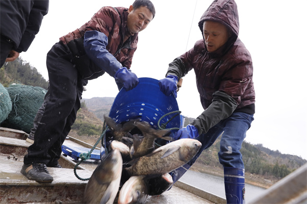 2月2日,黎平縣雙江鎮呂孖村生態魚喜豐收。