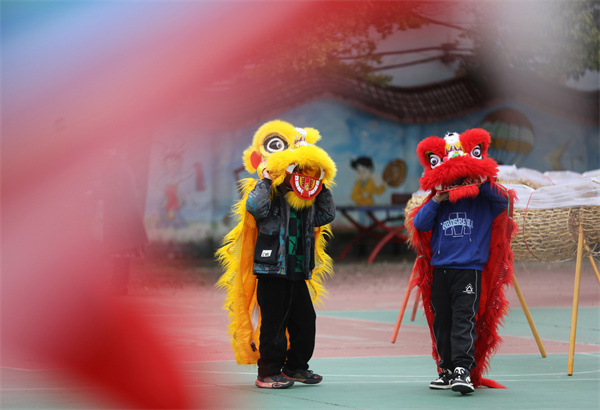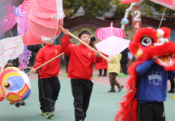 2月2日,小朋友在貴州省黔東南苗族侗族自治州施秉縣城關鎮練習玩龍燈,為迎新春龍燈會作準備。(磨桂賓 攝)