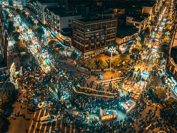 (3)活動內容:①百米長龍游街展演;②11個村(社區)龍燈花車方陣巡游展演,包括故事花車、踩高蹺、扮丑角、彩龍船等傳統民俗活動。