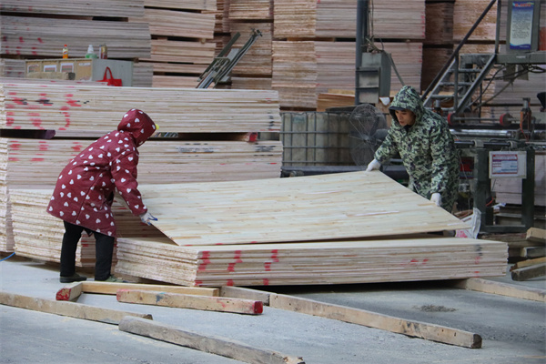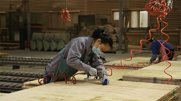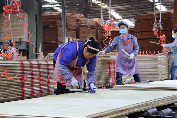 “我來在這裡做組胚、排板這些活路,一個月工資有3000元到6000元,來這裡上班已經有三年的時間了。”貴州群山木業有限公司員工潘蘭會説。