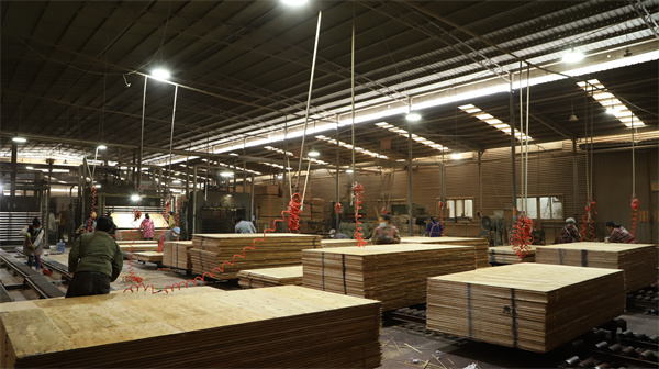 冬日時節,走進三都交梨森工産業園貴州群山木業有限公司,智能化車間機械轟鳴、自動化生産線“火力全開”,運輸叉車來來往往,工人們各司其職在各自工作崗位上有序地忙碌着,一塊塊嶄新的生態板材正在産出。