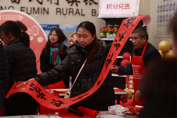 &江縣組織20余名書法愛好者在&江縣富民村鎮銀行廣場揮毫潑墨,一幅幅春聯應運而生。“玉兔呈祥辭舊歲,金龍獻瑞迎新年;龍蟠虎踞慨而慷,戶納千祥歌且舞;忠厚傳家福自臻,寬宏處世喜常在;春回大地人增壽,福到人間門生輝。”等春聯內容寓意美好、吉祥,深受群眾喜愛,也寓意着對來年的期望,對節日的祝福。