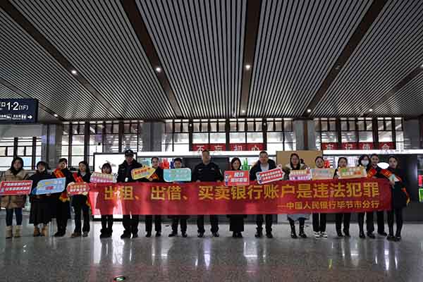 2月5日,春節臨近,外出務工人員陸續踏上返鄉路,春運繁忙的畢節高鐵站裏,穿梭着無數背着行李的身影。為有效遏制電信網絡詐騙犯罪高發態勢,減少人民群眾的財産損失,進一步加大防範電信詐騙宣傳力度,切實提高群眾防範意識和識別能力,由中國人民銀行畢節市分行主辦、中國郵政儲蓄銀行畢節市分行承辦,畢節市公安局、畢節市電視台、七星關區委政法委員會等多家單位協辦的“春節回家過大年,錢袋旅程皆平安”反詐主題宣傳活動在畢節市高鐵站入口、候車室以及高鐵上開展。