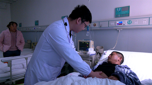 在普外科病房裏,醫生們奔忙在各個病房或治療室,查看病情,幫助病人&&檢查等。