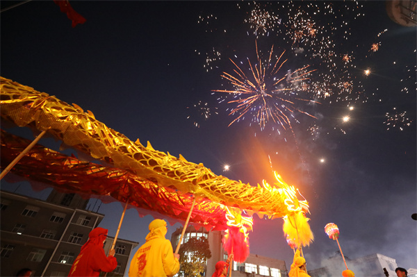 伴隨着游燈隊伍走過,絢麗多彩、姹紫嫣紅的煙花綻放夜空,將節日氣氛點燃至沸點。