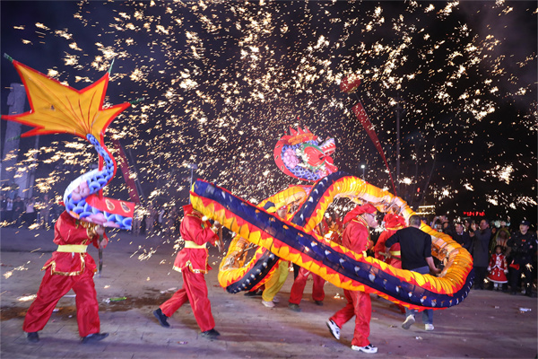 2月18日,大方縣舉行隆重的“初九齣龍”儀式,舞龍舞獅、打鐵花等民俗活動輪番上演,現場鑼鼓喧天,熱鬧非凡。