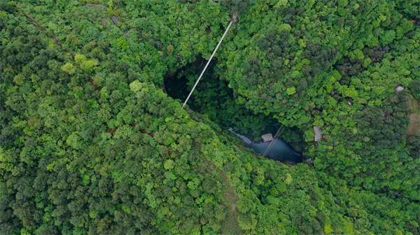 航拍貴州開陽猴耳天坑 極限運動有了新玩法。新華網 周遠鋼 攝