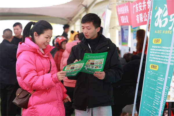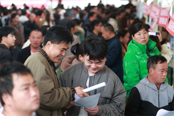 在岑鞏縣舉行的2024年三水區·岑鞏縣“春風行動”暨東西部勞務協作專場招聘會現場人頭攢動。(唐鵬 攝)