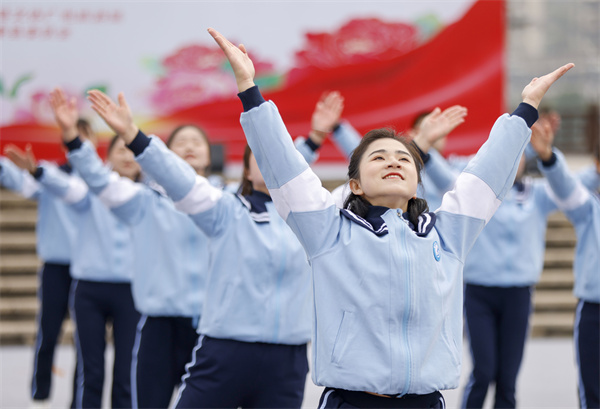 當日,貴州省黔東南苗族侗族自治州施秉縣舉辦工間操、讀書等活動,迎接即將到來的“三八”國際婦女節。