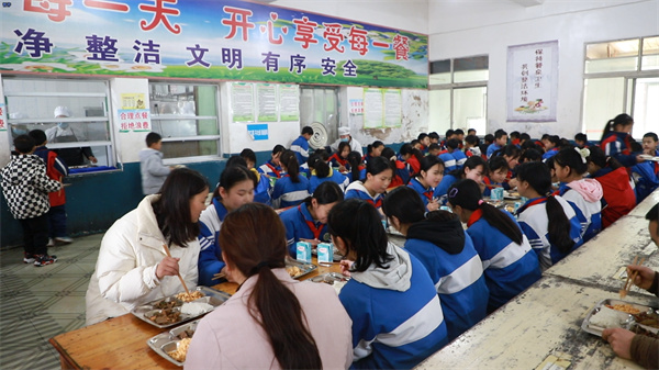 家長督查日不僅停留在“看”,還通過與學生同吃“一碗飯菜”,進一步了解營養餐的營養度和新鮮度。上午10點,學校食堂炒制間便開始熱鬧起來,廚師們身着工作服,佩戴口罩,開始製作今天的午餐,不到2個小時,熱騰騰的三菜一湯依次盛入盆中,在各班級老師的帶領下,學生和家長有序排隊,適量盛飯盛菜,領取牛奶,分區域就坐,大快朵頤享受午餐時光。丹寨縣興仁小學學生龍麗晴開心地説:“今天的菜都很好吃,都非常合我的胃口,我都吃光了,還有牛奶非常好喝。”