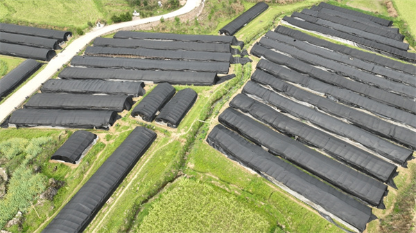 岑鞏縣凱本鎮龍塘河村羊肚菌基地的一角。(鐘勇 攝)