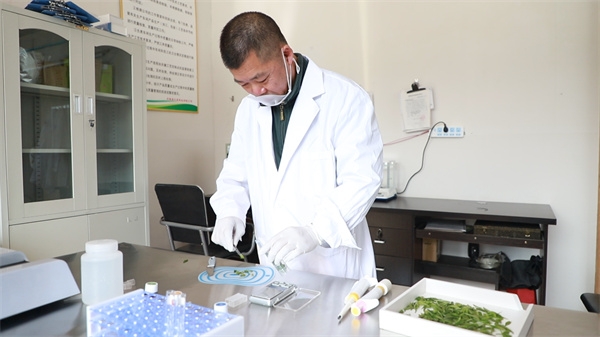 在開發區另一家茶葉公司,機器轟鳴,為加快春茶提質增效,去年該公司投入110萬元資金,購進了一條清潔型綠茶生産線,從鮮葉的攤晾、殺青、揉捻到做形、提香等,實現全線自動化、標準化生産。去年茶葉産量達15噸,實現産值480萬元的目標。今年,該公司在産品的“溯源”上做足功課,每批茶葉都會經過嚴格檢測,並將各項檢測結果通過二維碼呈現給消費者,讓大家買得安心,喝得放心。貴州省丹寨縣三泉茶業有限公司總經理張記乾説:“我們這個是一品一碼的,每一盒茶葉都有自己的身份證,通過二維碼就可以看到茶葉從種植、加工到出品的整個過程和檢驗的結果,讓消費者更直觀了解到丹寨乾淨的茶葉,也為打響我們雲硒茶品牌做到一個很好的宣傳效果。”