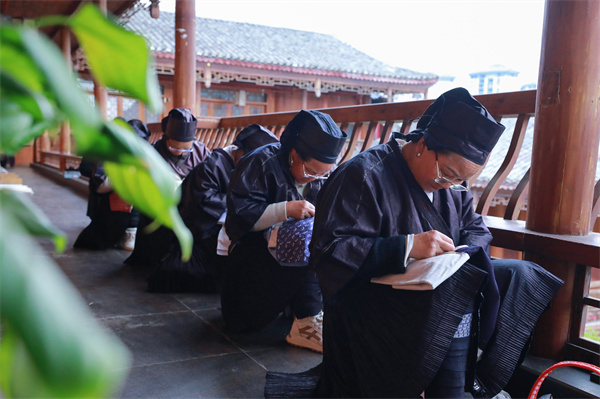 苗族錫繡目前僅存於劍河縣境內,是世界唯一的金屬繡,被譽為穿在身上的“無字史書”。一代又一代的劍河苗族姑娘,在家門口、在田野旁、在繡坊裏,一針一剪一線,賡續着生生不息的歷史文脈,傳承着延綿不絕的傳統技藝。