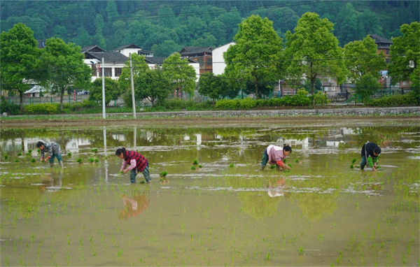 初夏時節,熏風輕拂催繁茂,綠蔭鋪野換新光。在貴州省岑鞏縣水尾鎮馬家寨村的水稻制種基地,田塊蓄水充盈,30多名村民忙碌在田間地頭,起秧、搬運、拉行、移栽,大家各司其職,忙而有序,共同織成了一幅“爭主動、搶農時、興産業”的壯美田園畫卷。