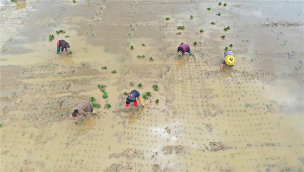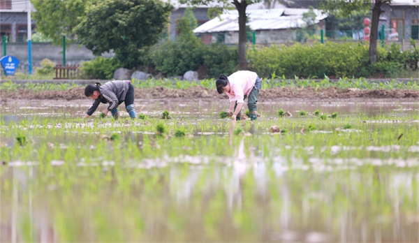 “在家裏沒事做,就來給制種大戶栽秧,一天也掙得120元的現錢。”趙佔英熟練地插着制種秧苗,言語間帶着爽朗的笑聲。