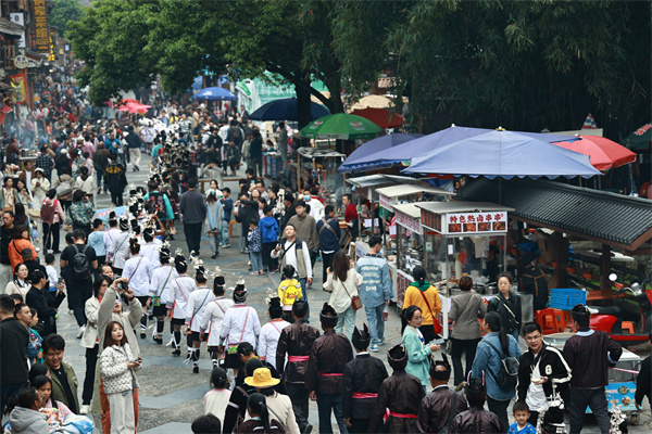 2024年穀雨節期間,肇興景區接待游客2.58萬人次,較去年增長31.63%,旅游綜合收入達2787.66萬元,同比增長49.62%,直接帶動了當地經濟的快速增長。“文旅”活動的持續推進,近期三季度來,肇興侗寨接待游客量突破60萬人次,增幅達270.56%,其中大灣區游客佔比33.84%,文旅融合吸引力日益凸顯。