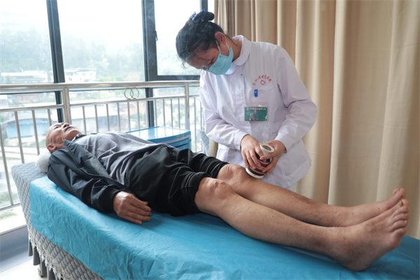 在岑鞏縣中醫醫院,醫護人員為就醫群眾開展中醫特色診療。(李昌焯 攝)