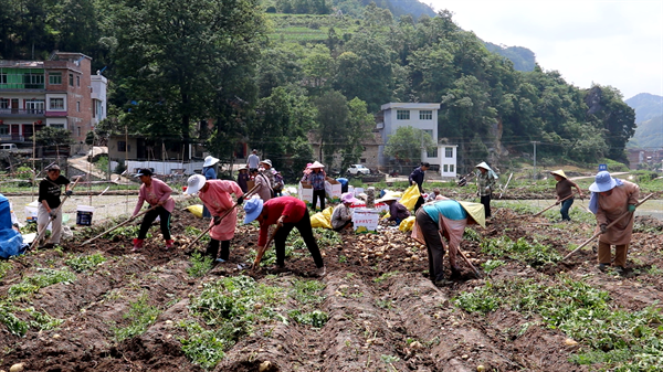 務工群眾正在挖土豆