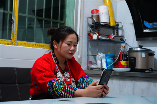 丹寨縣龍泉鎮馬寨村村民潘萬英坐在沙發上開始學習普通話。潘萬英是一名全職寶媽,一次偶然契機,她看到抖音直播間正在進行普通話教學,第一次嘗試跟讀以後,激發了潘萬英的學習興趣,此後一年,她每天都利用閒暇時間學習普通話,普通話得到較大提升後,潘萬英自主運營賬號,嘗試直播帶貨,推薦家鄉的農特産品。潘萬英開心的説:“每天我都會抽取一點時間,在手機上搜索相關課程,跟着老師他們學普通話,學多了,我的普通話發音就越來越好。我也開始在學做直播,所以我必須要把普通話這一塊學好,才能在直播間分享很多我自己的農特産品,把我們的産品推出去。”