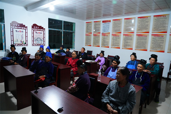 晚上7點半,是丹寨縣龍泉鎮馬寨村“夜校”的上課時間,與普通夜校不同的是,坐在教室裏的都是村子裏上了年紀的老人,他們白天務農,吃過晚飯就會主動來到村委會的教室學習普通話。課程大多是簡單的生活用語,主要服務於老人的日常交流,拓寬老人的交流方式。丹寨縣龍泉鎮馬寨村村民吳明華説:“我學習普通話以後,我覺得很有用,我去醫院看病,可以跟醫生用普通話交流了,我覺得很方便。”