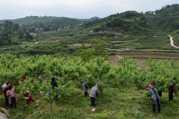 該鄉黃桃基地裏已套種紅薯、南瓜、菠蘿等作物800余畝,帶動周邊勞動力就業200餘人次,有效幫助群眾增收,助推鄉村振興。
