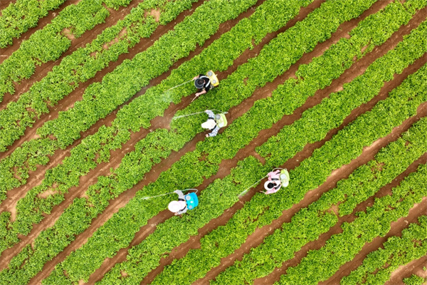 岑鞏縣天星鄉太子參種植基地,村民正在開展管護。(萬再祥 攝)