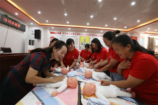 育嬰師正在指導留守婦女學習育嬰知識。(楊雲 攝)