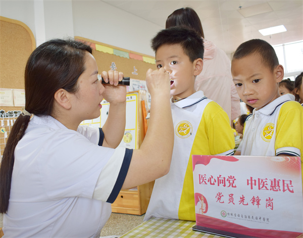 課後,口腔科、眼耳鼻喉科、新生兒科以及治未病科的醫療專家為200余名幼兒測視力、看牙齒、稱體重和量身高等健康服務,專業精湛且優質服務備受孩子們喜歡。