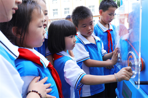 活動現場,科普志願者一一擺出了“運動與力”“電磁現象”“視覺體驗”“機械運動”等科普展具,孩子們對這些稀奇有趣、異彩紛呈的科普展具充滿了好奇,大家三五成群地圍在展具前,“哇,這是什麼啊?哇,這個球可以飛起來耶!”在科普志願者的指導下,孩子們認真觀察了解其中的科學原理,動手操作實踐、親身體驗科學帶來的神奇和魅力,現場探討聲、驚嘆聲、歡笑聲此起彼伏,孩子們被這些科學知識的魅力所吸引。
