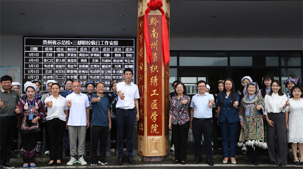 6月18日,黔南州染織繡工匠學院揭牌儀式暨2024年黔南州高級繡工匠能力提升培訓班開班儀式在三都縣民族中等職業學校舉行。