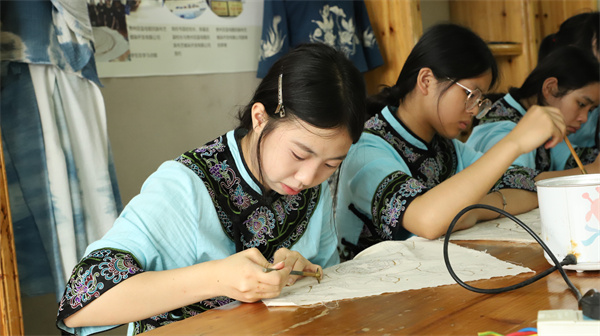 會後,與會領導、參訓學員共同為黔南州染織繡工匠學院揭牌,實地參觀學院染織繡教學基地、實訓基地。