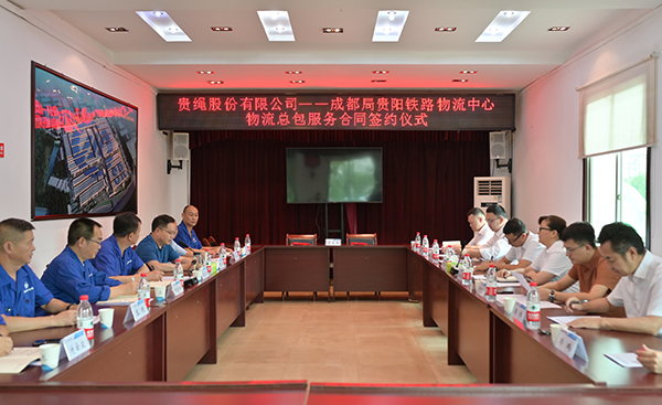 6月20日下午,中國鐵路成都局集團有限公司貴陽鐵路物流中心(以下簡稱貴鐵物流中心)與貴州鋼繩集團有限公司(以下簡稱貴繩集團)下屬企業貴州鋼繩股份有限公司簽訂2024年鐵路物流總包服務協議。協議明確了雙方責任和義務、發運總量、運輸服務等內容,標誌着貴鐵物流中心加快構建現代物流體系、實施物流總包模式的成功探索。貴鐵物流中心、遵義車務段、貴繩集團主要領導共同出席了本次簽約儀式。