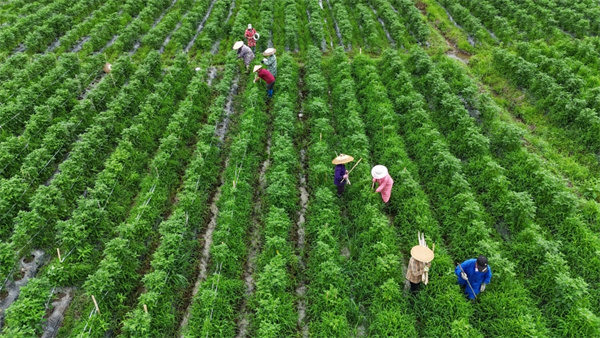 今年,全縣預計可産出新椒3400萬公斤,總産值約1.32億元。全縣有規模化辣椒種植基地6294畝,全年可帶動群眾務工近3萬人次、增收3000多萬元。(陳昆 周燕)