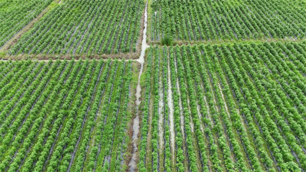 岑鞏縣客樓鎮安山村辣椒種植基地全面進入開花坐果期。(陳昆 攝)