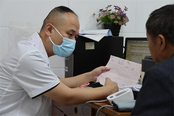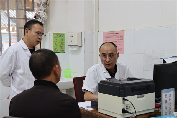 在三都縣人民醫院(醫共體)總院,醫護人員正向有需要挂專家號的群眾做好引導服務。專家們仔細詢問患者病史,進行細緻地檢查。針對每位患者的具體情況提供個性化的診療建議。