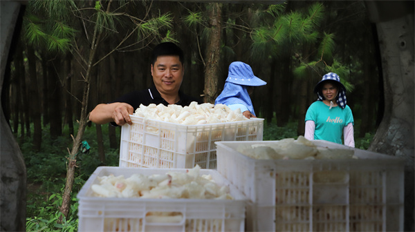 目前,經過精心培育和管護,該公司種植的紅托竹蓀長勢喜人,迎來了成熟採摘期。這不僅為當地群眾提供了就近就業的機會,還讓“小小竹蓀”成為推動群眾增收的“致富傘”。
