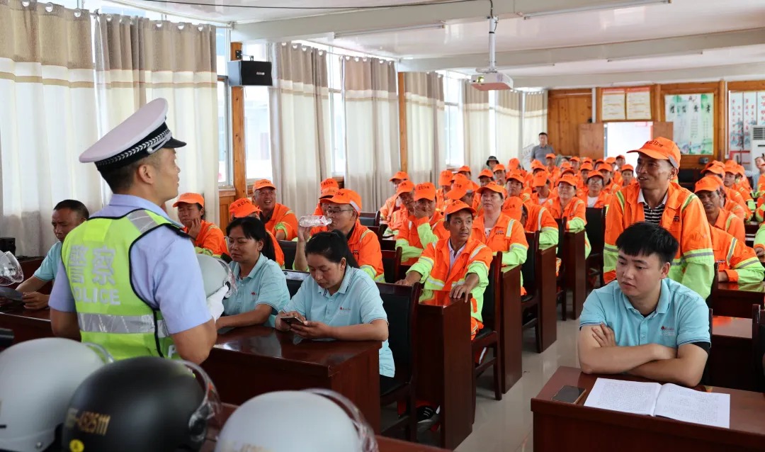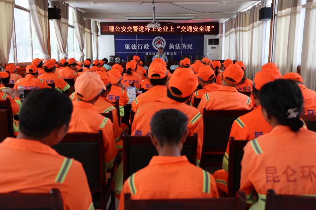 7月17日下午,三穗縣公安局交警大隊到縣綜合行政執法局為70余名環衛工人進行交通安全宣傳,為“城市美容師”送上了一堂交通安全課。活動通過案例講解、觀看視頻、互動問答等形式為環衛工人“城市美容師”上了一堂實用的交通安全課。