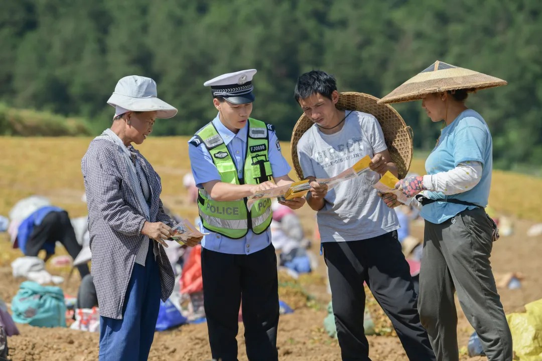 7月17日,黃平縣公安局交警大隊深入新州鎮沙井村太子參藥材基地開展夏季交通安全宣傳,強調“一盔一帶”重要性,提醒務工群眾禁止乘坐農用三輪車、超員、超載車輛,堅決抵制無證駕駛、酒後駕駛、駕駛報廢車輛上路,切實保障出行安全。