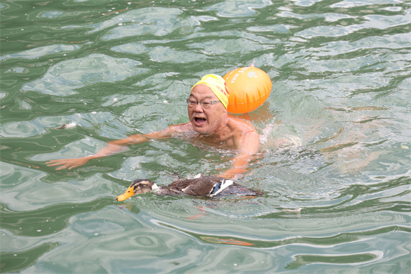 活動先後舉行了暢游㵲陽河、搶鴨子等環節,尤其是水上搶鴨子環節,十分考驗個人游泳技術,來自成都和金沙地區的游泳隊,興奮展示着抓獲的七八隻鴨及名次標牌,在聯想著美食的同時,也在積極備戰游泳大賽。