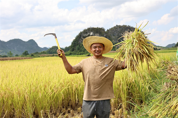 者密鎮和平村常務幹部陸朝陽告訴筆者:“我們壩區氣候比較好,陽光充裕,種植水稻特別適宜。目前我們村已經有農戶在進行水稻收割,相對於其他地區我們可能要早一個月左右,今年的長勢比較好,預計會得到一個好的豐收。”